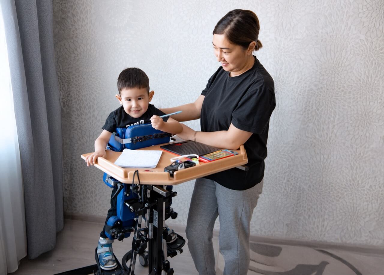 Сейчас Данияру 3 года. Благодаря постоянным занятиям он научился самостоятельно сидеть, уверенно держит голову, хорошо владеет руками и даже пробует стоять у опоры. Но для дальнейшего прогресса ему необходима специализированная реабилитация в медицинском центре, где он сможет заниматься на вибротренажере Galileo — важном инструменте для укрепления сохранных мышц.